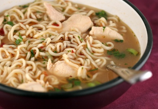 There is something really comforting about Ramen noodles. I think its because I remember eating them when I was younger and also in college. Everyone knows you really can’t beat the price – but they are by no means a healthy food that you want to have too much of. It feels good to make them now and throw those silver salt packets in the trash can – and really ‘soup’ up this dish with real chicken, fresh cilantro and scallions. There is just a little bit of spice in this dish to kick things up.